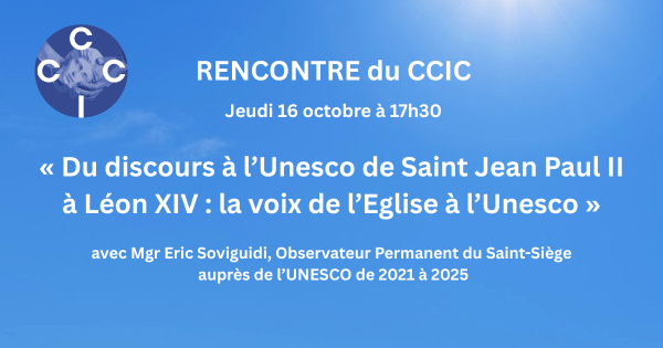 RENCONTRE du CCIC – « Du discours à l’Unesco de Saint Jean Paul II à Léon XIV : la voix de l’Eglise à l’Unesco » avec Mgr Eric Soviguidi
